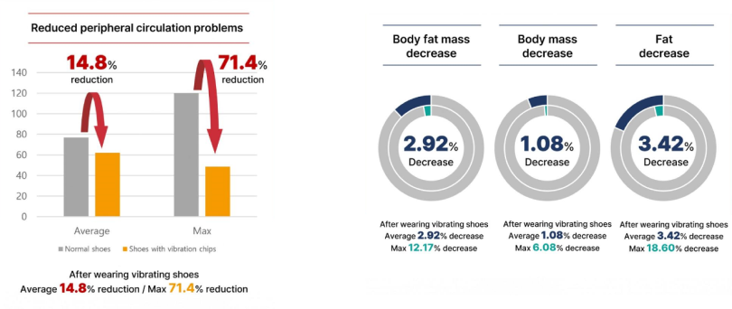After 40 adult men and women performed walking exercises for 12 weeks, the results showed that the shoes with vibration chips